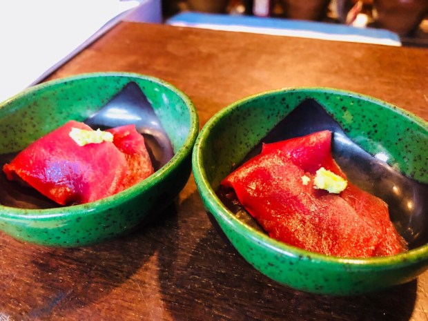 無事に開店しまして、お通しは 赤身刺し(≧∀≦)