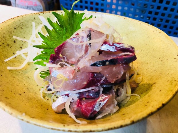 オススメメニューの中から、釣り真鯵のタタキ。
