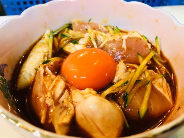 こちらも オススメメニューから、鳥ユッケ。
