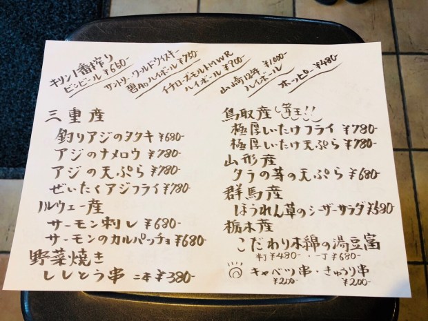 オススメメニューから、釣り鰺のタタキ!