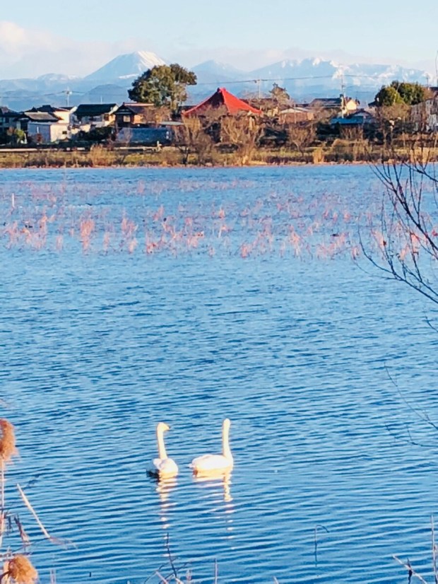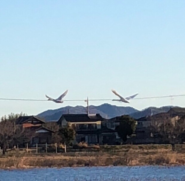 白鳥スポットには、バズーカーレンズを装着しました、カメラマンの おじさま達が構えておりまして、飛び立つ瞬間を狙っておりました❗️
