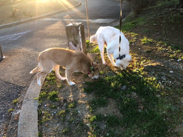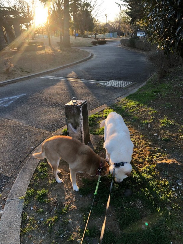 2人は 全然気にならないようで、いつもと同じ お散歩でした(^^;;