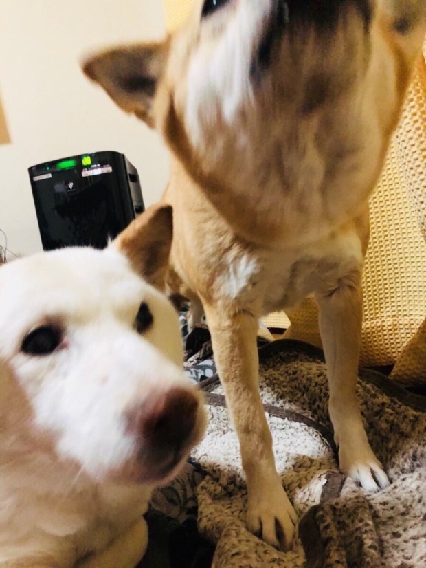 殿が起きたら、私も〜❗️とアピールの ヒバ子さん(⌒▽⌒)