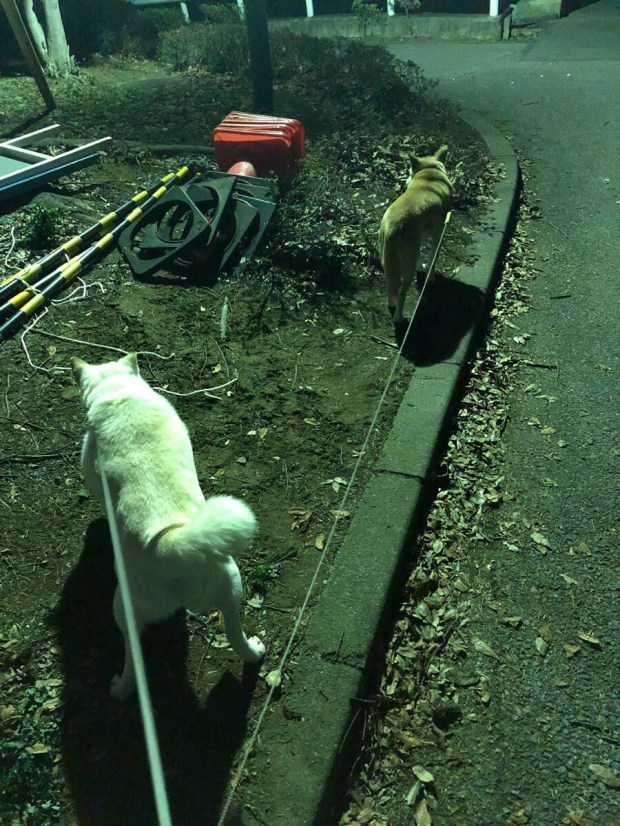 4時半の散歩時には 吹いてなかった 風が…5時半には吹き始めてまして(つД`)ノ