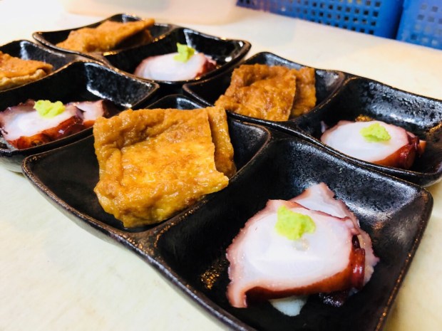 夕方 5時に開店となりまして、お通しは 地タコ刺しと油揚げ煮。