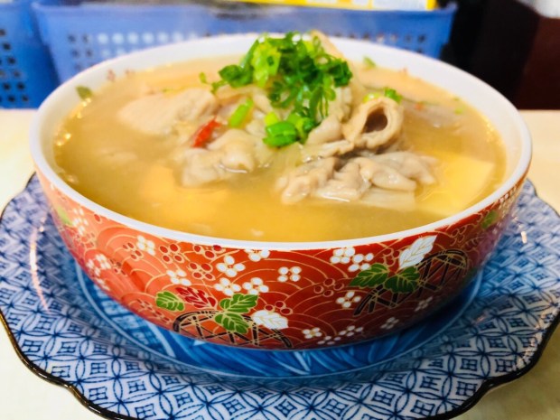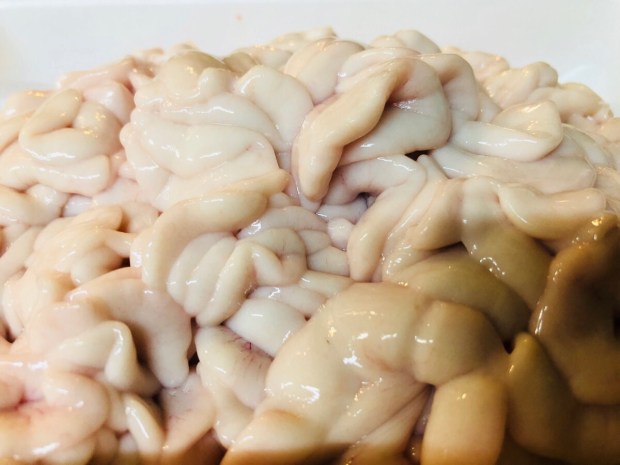体温まり商品、ブタの大トロもつ煮。