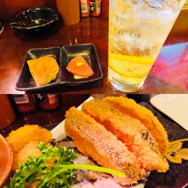 お通しは、マカジキしお〆と油揚げ煮。