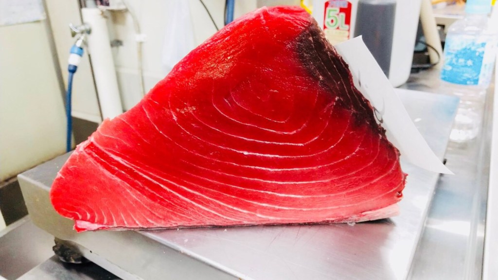 朝イチ、豊洲市場の仲買いさんから 御連絡頂きまして、買い付けました 紀州勝浦産 天然本鮪❗️