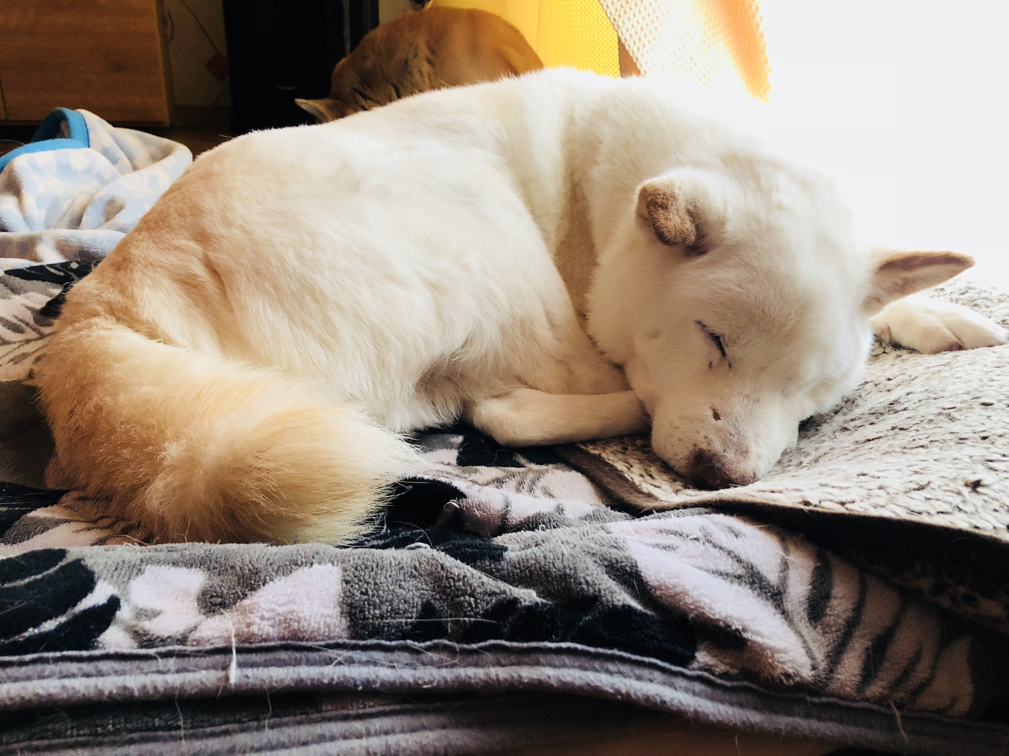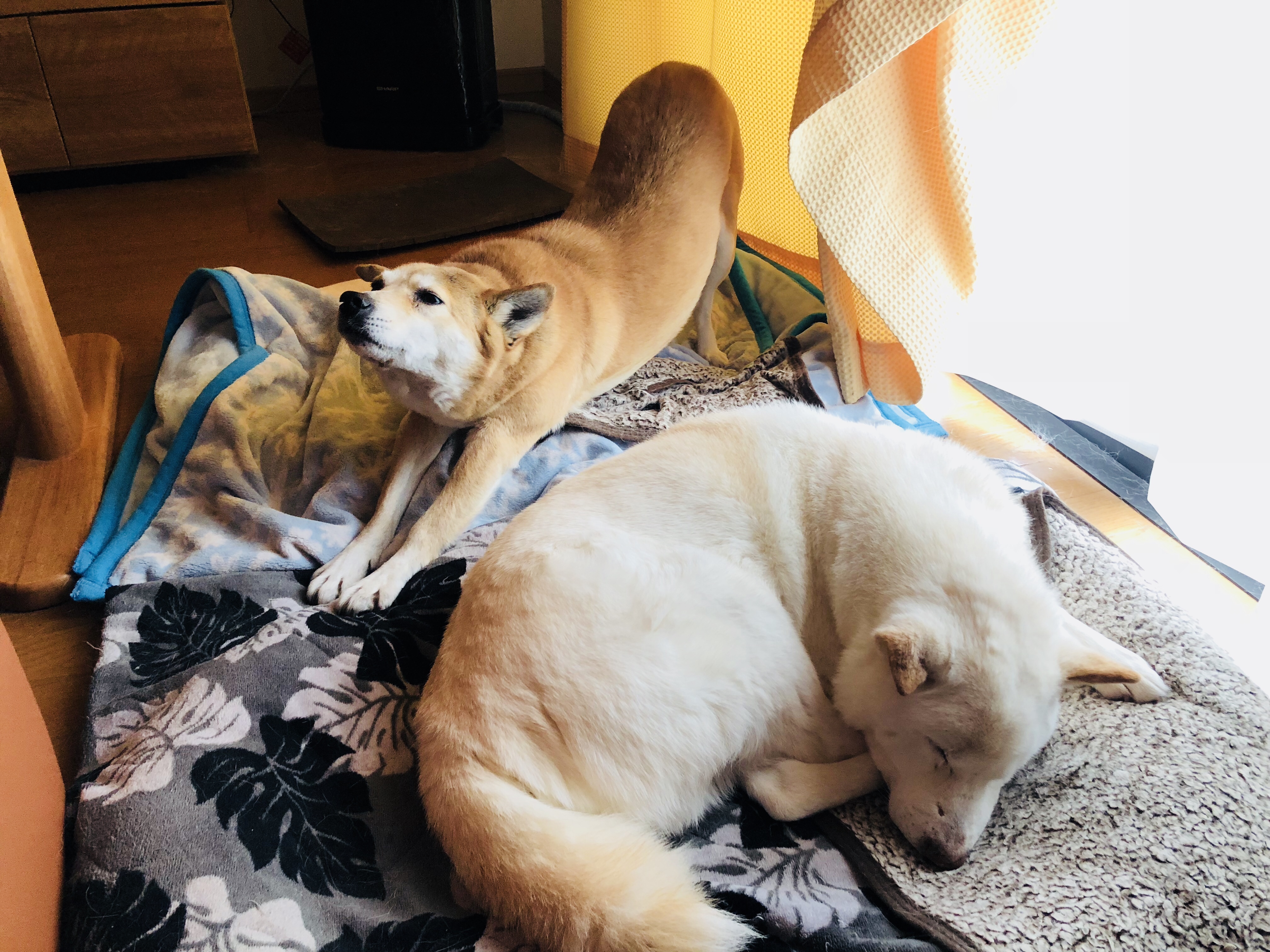 午後の お散歩へ 帰宅しますと、お殿様は 爆睡でして_:(´ཀ`」 ∠):