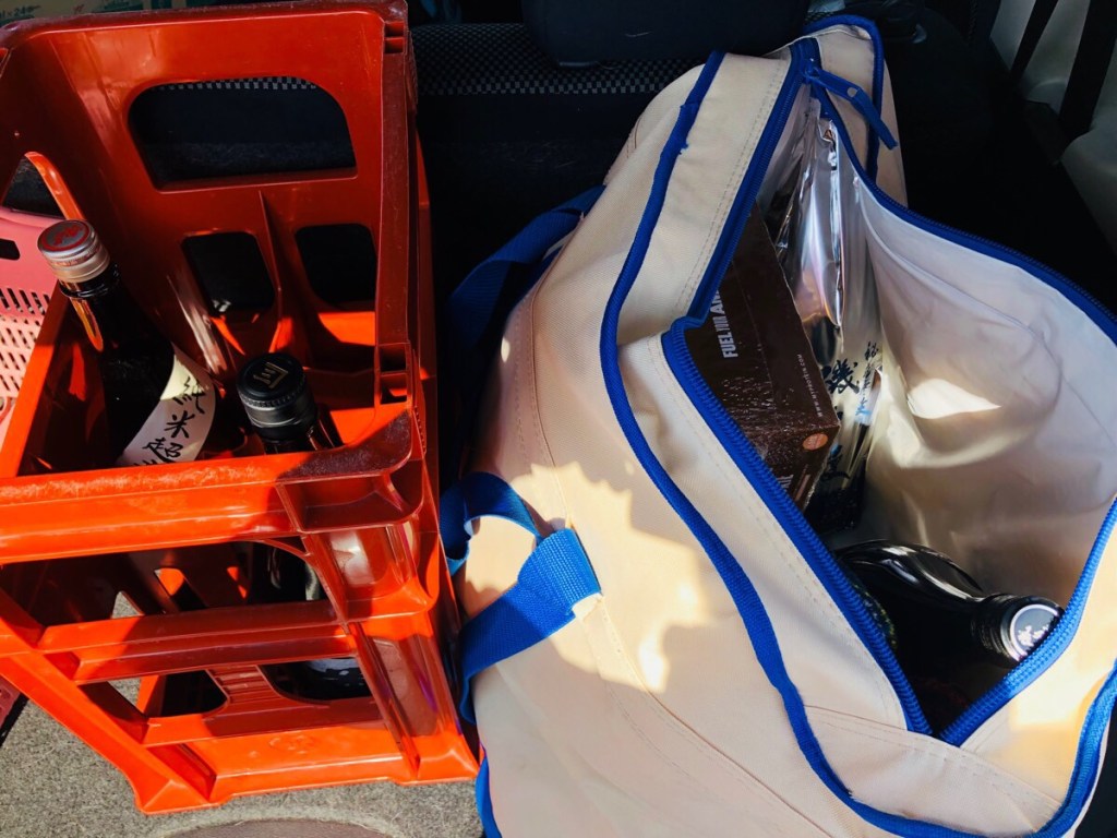 持ちきれないほど 買い込みそうでしたので、厳選しまして 日本酒と麦焼酎を6本だけ 持ち帰り〜(=゚ω゚)ノ