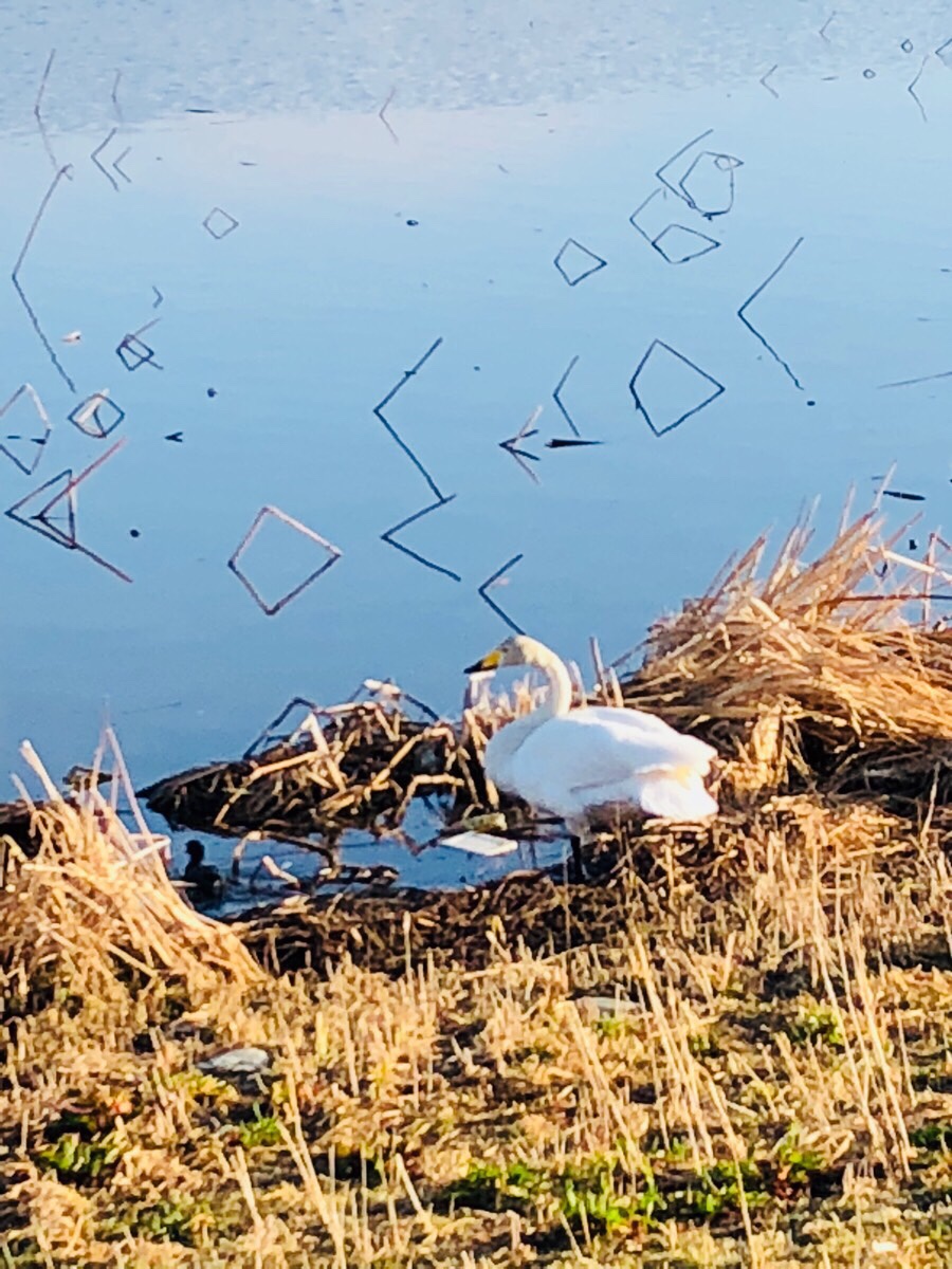 ウォーキングへ出ました 瞬ぴぃを 白鳥さんが お出迎えしてくれましてー(≧∀≦)