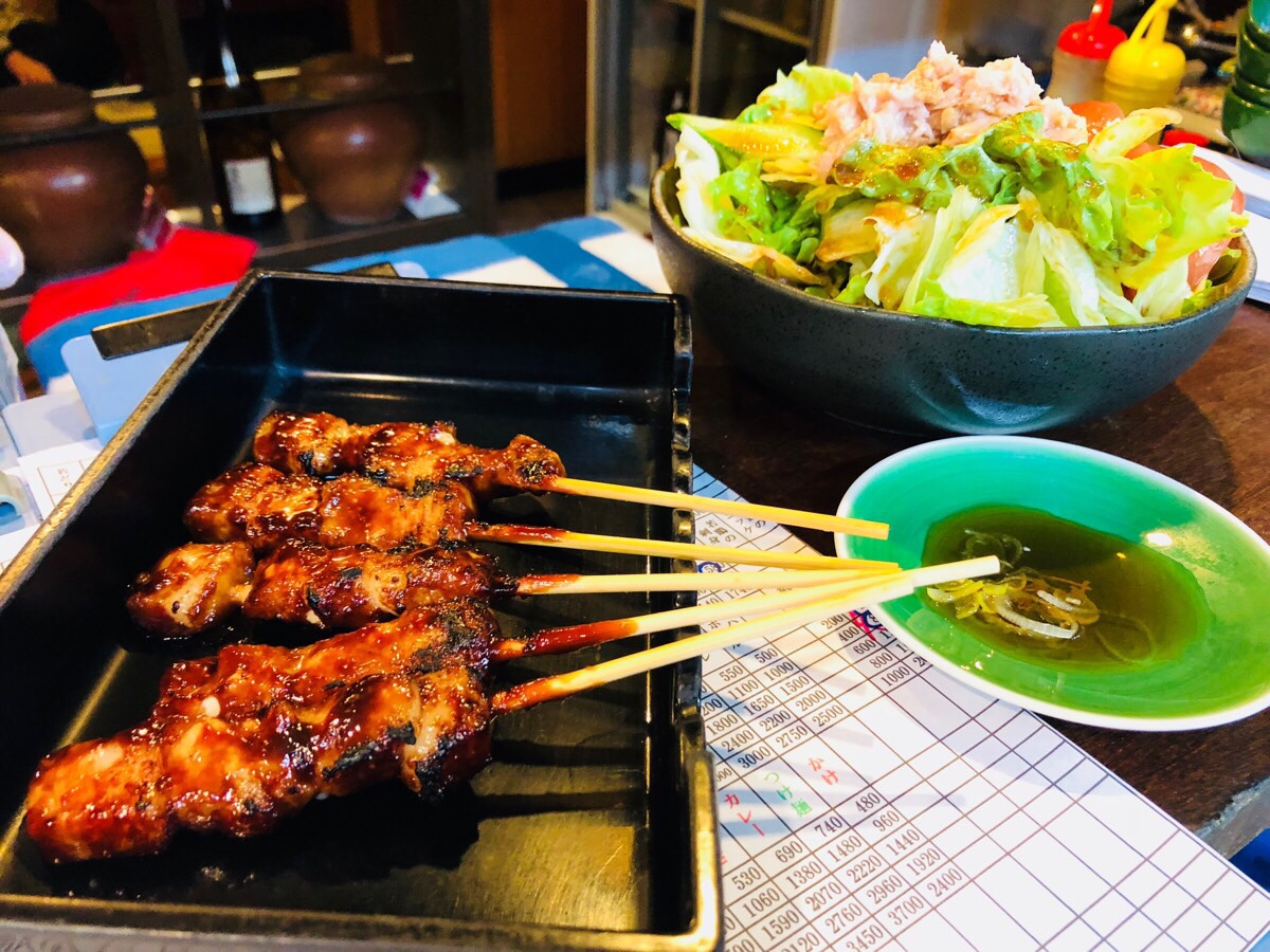 サラダと焼きとりー。