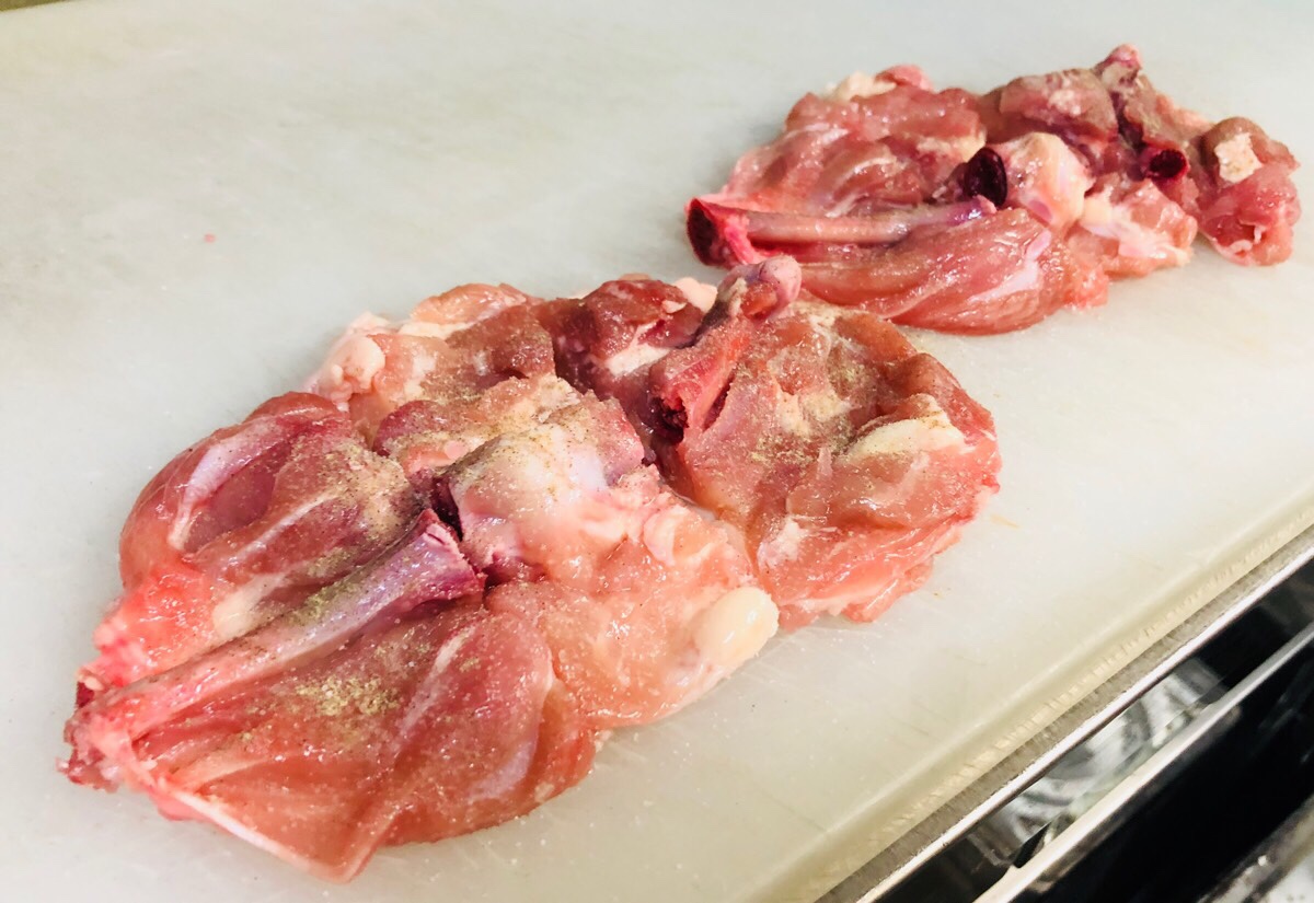 骨付きモモ肉を使用の 唐揚げ。