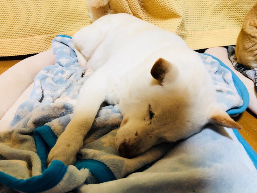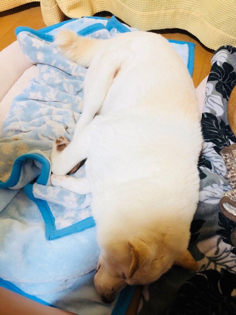 お家に戻りまして お散歩しまして、御飯を食べて ワッチャカしまして、またまた眠くなりましてε-(´∀`; )
