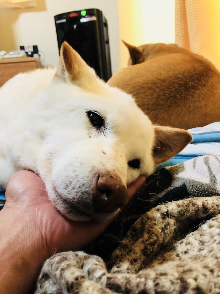 寝ている お殿様の横で、まだ眠くないという感じの ヒバ子さんでした( ´∀`)