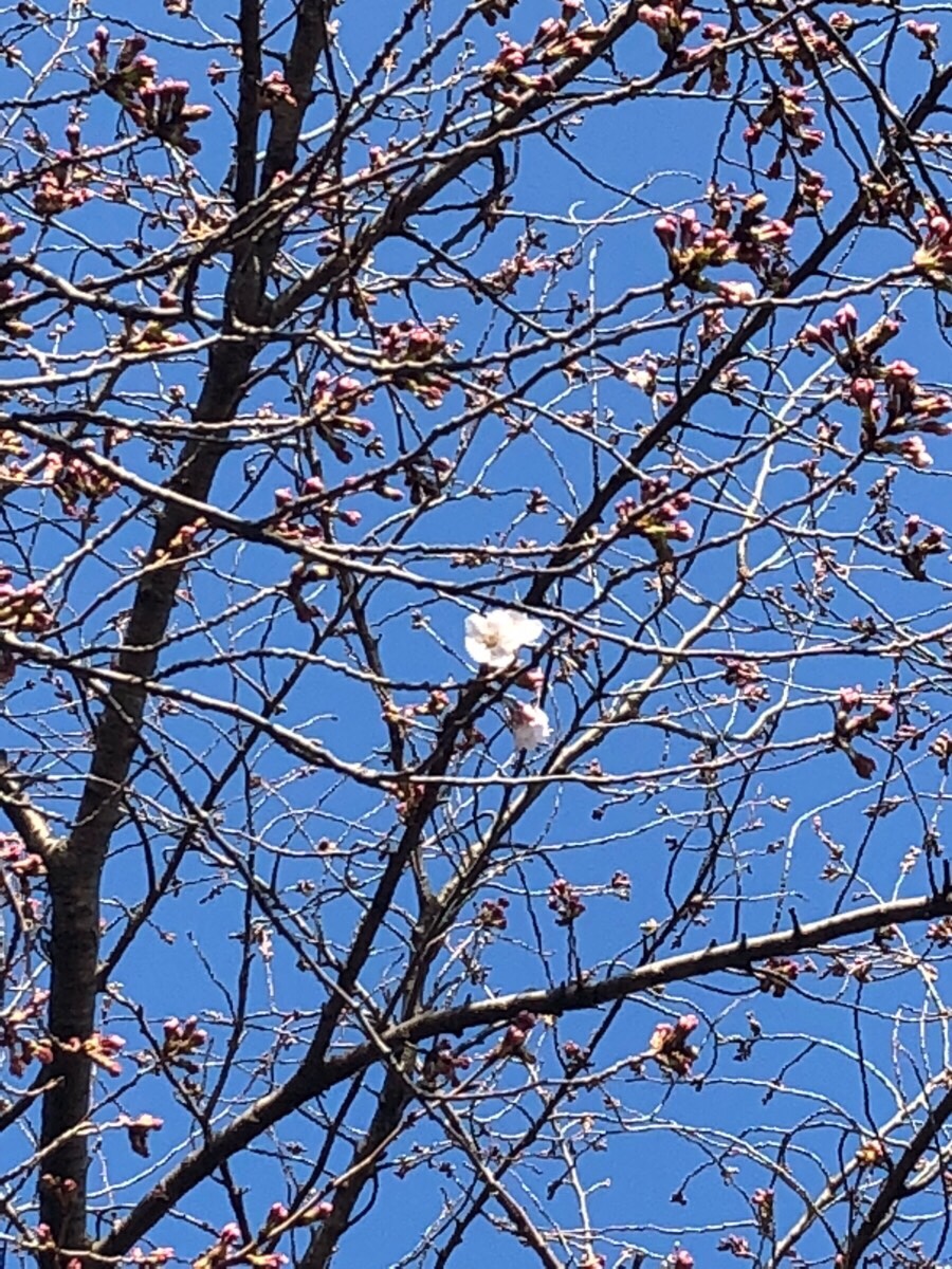 朝の お散歩へ行きますと、鶴生田川の 桜も 咲き出しておりまひた♪( ´▽`)