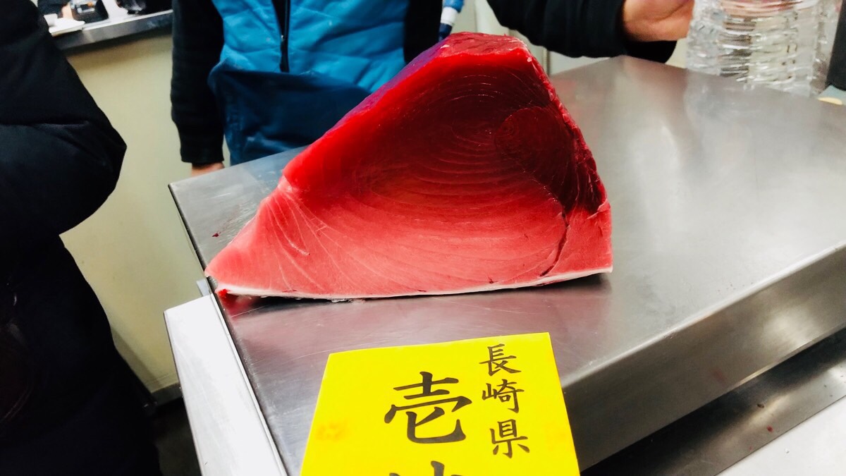 朝イチ、豊洲市場の仲買いさんより 御連絡頂きまして、買い付けました 長崎県壱岐の天然本鮪♪( ´θ`)