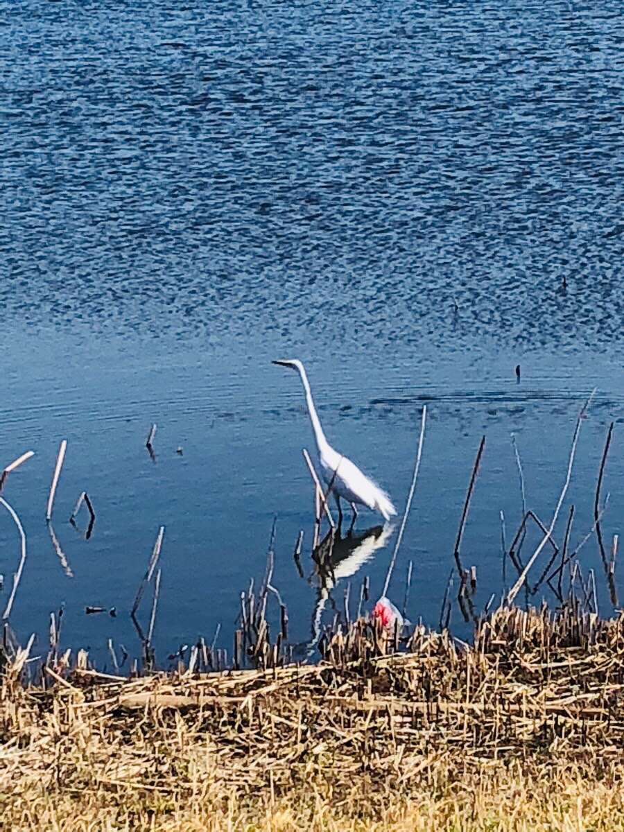 テクテク歩きまして、いつもの場所に いらっしゃいました、サギさん(^^)