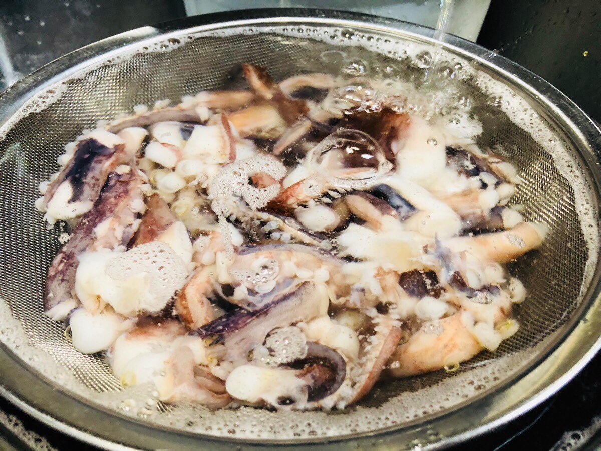 揚げ物の人気者、唐揚げ用のイカゲソを掃除〜!