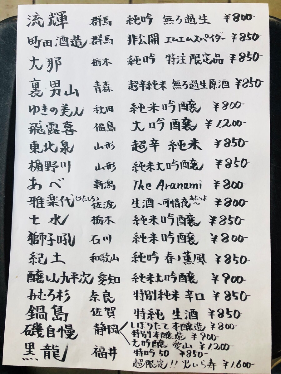 お店の掃除や 進められる準備をしまして、日本酒メニューの書き直し(^-^)v
