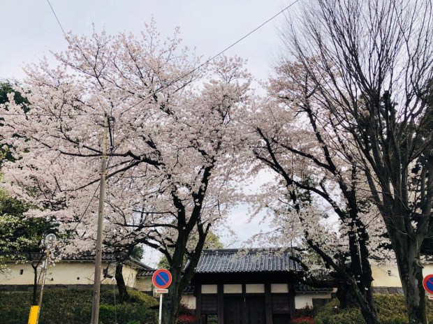 お店の近くの 門と桜も一枚おさえておきまして🌸