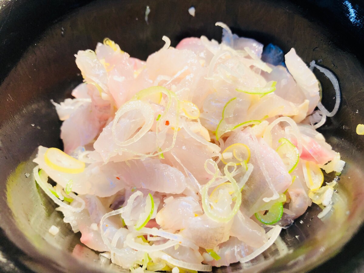 お通し用に、ヒラメの塩ユッケを(o^^o)