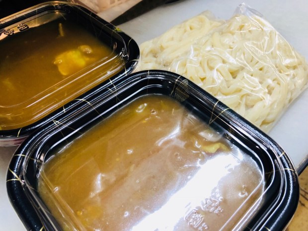お家で 麺を湯通しして、合体させて 完成させてくださいませ。
