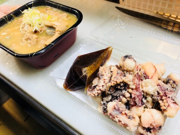 特製大トロもつ煮とイカゲソ唐揚げ。