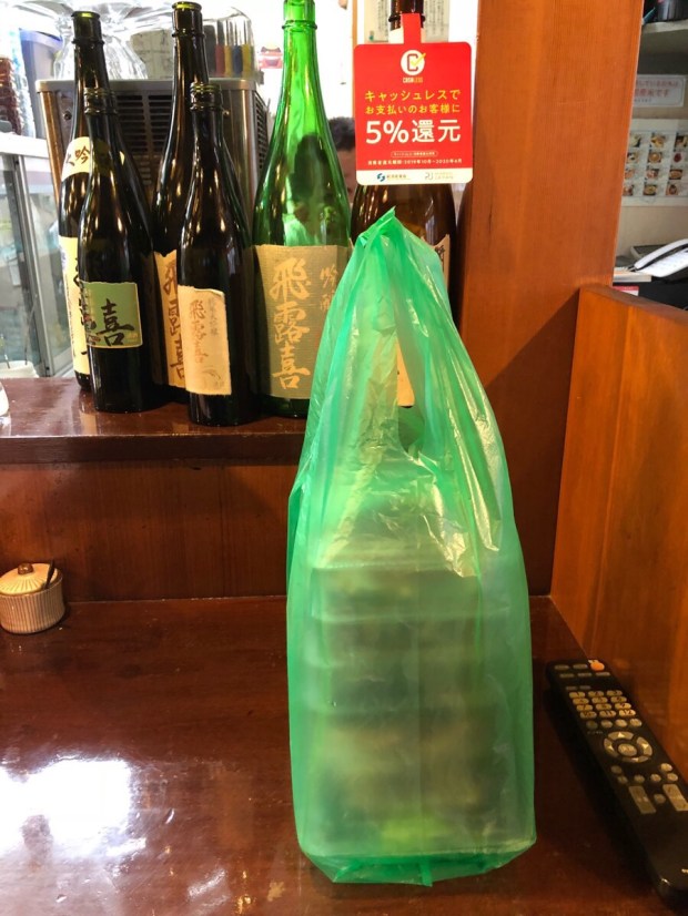 緑の袋へ入れまして、テイクアウト完成╰(*´︶`*)╯