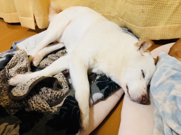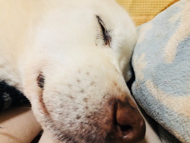 お耳が聞こえない お殿様は、天使の表情で 爆睡zzz…。
