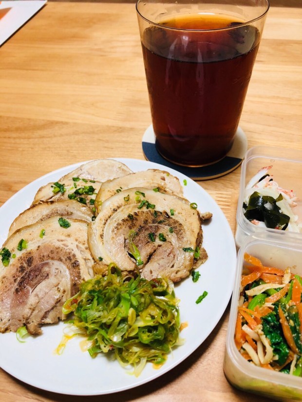 前日の オツマミの残りと、しげそばさんで昼間にテイクアウトしておきました オツマミチャーシューでした(o^^o)