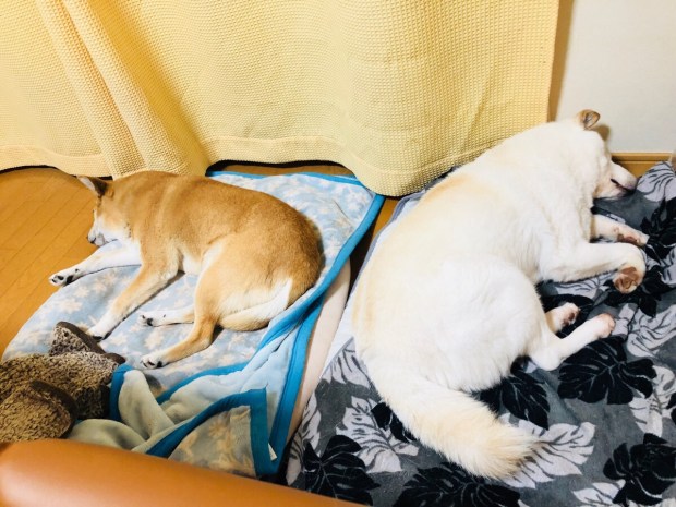 帰宅しまして、お散歩しまして、御飯を食べますと 少しワチャワチャしますが、落ち着くと またまた夢の中(@ ̄ρ ̄@)zzz。
