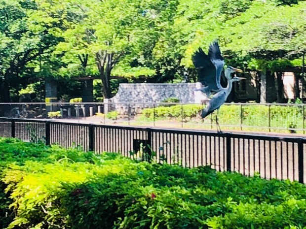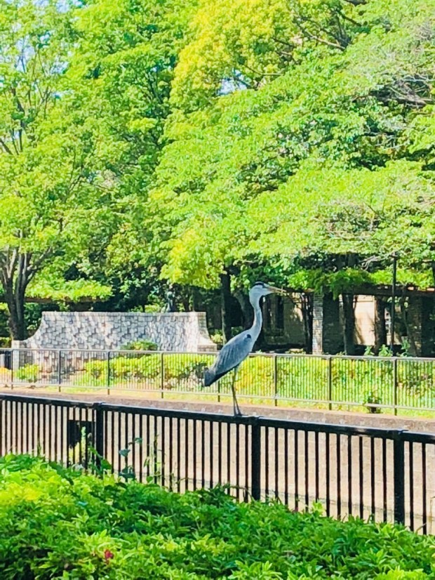 そこに サギさんが 涼みに⁈ 来ておりました。