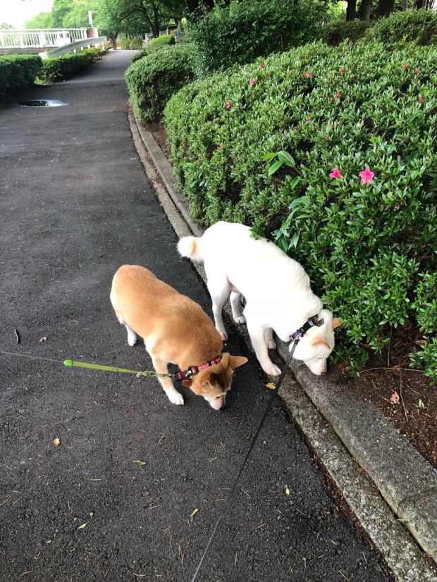 エアコン部屋で お留守番でした、2人をお散歩へU^ェ^U