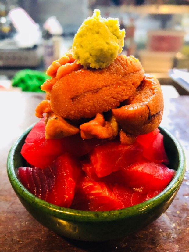 感謝の気持ちを受け取って下さりまして、小鉢まぐろ盛り 雲丹のせを御注文下さいました╰(*´︶`*)╯
