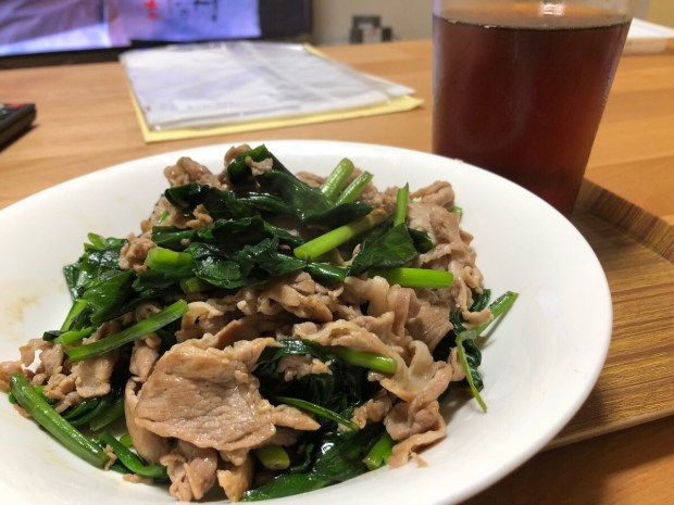 大好物の行者ニンニクを頂きましたので、豚肉と炒めまして(⌒▽⌒)