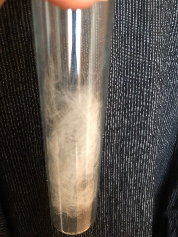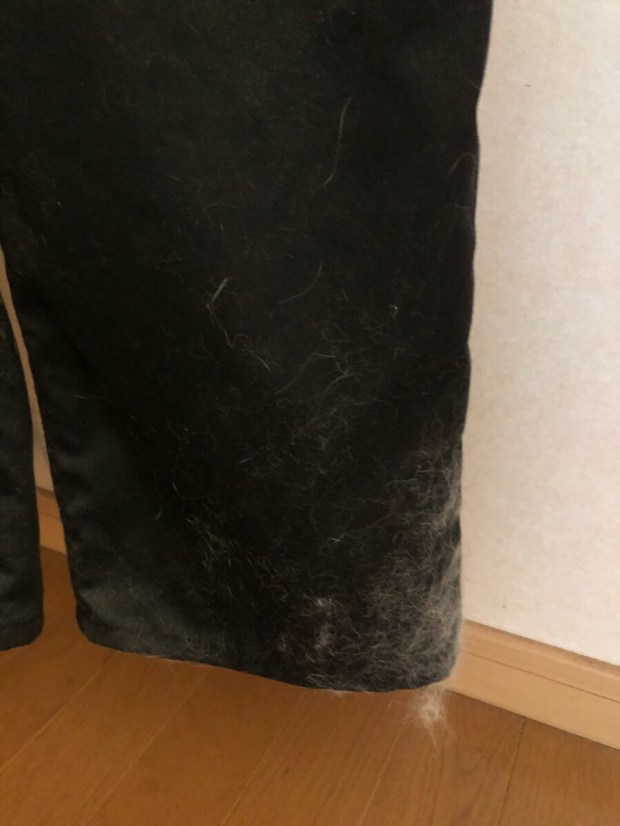 洋服に付いておりました ニャンコ様の毛を出来るだけ綺麗に取りましてー。