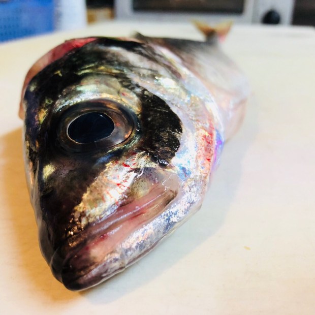 お店の方へ行きまして、準備進めまして、豊洲市場より 到着しました、三重県産 活〆釣り真鯵!