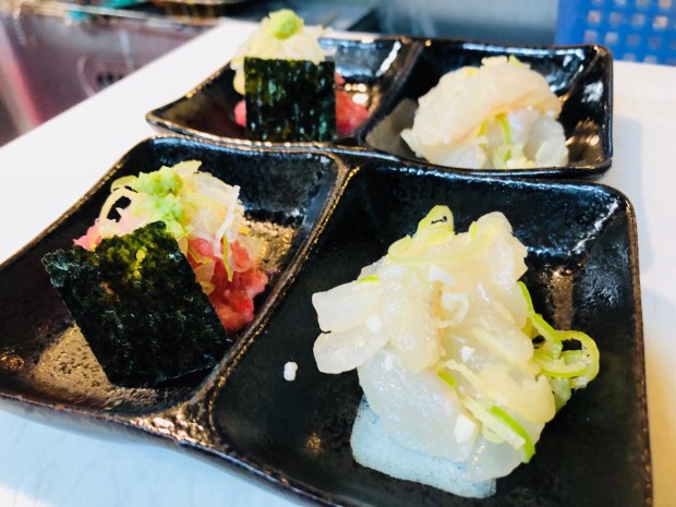 お通しは、ネギトロと鰈の塩ユッケ。