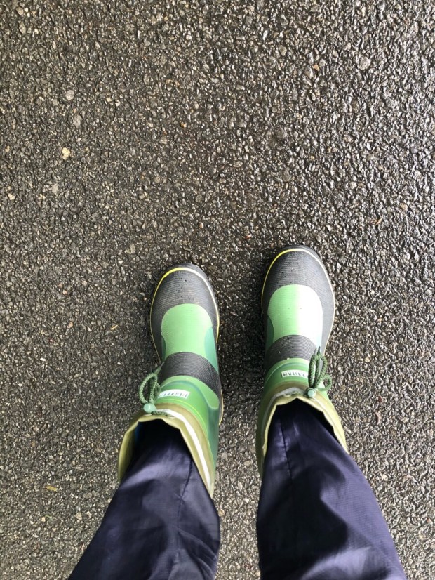 天気予報では 降っている時間帯でしたので、いつ降っても良いように、初めて長靴で ウォーキングへ。