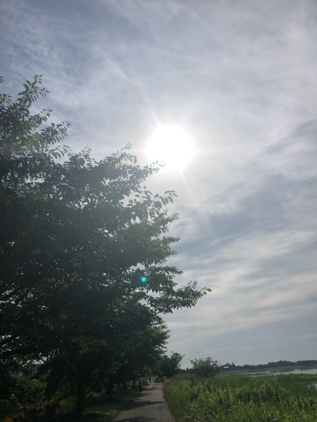 青空が 真夏でございまして、こりゃ午後には 本当に35℃オーバーだな…と感じました_| ̄|○