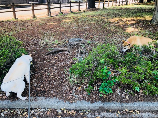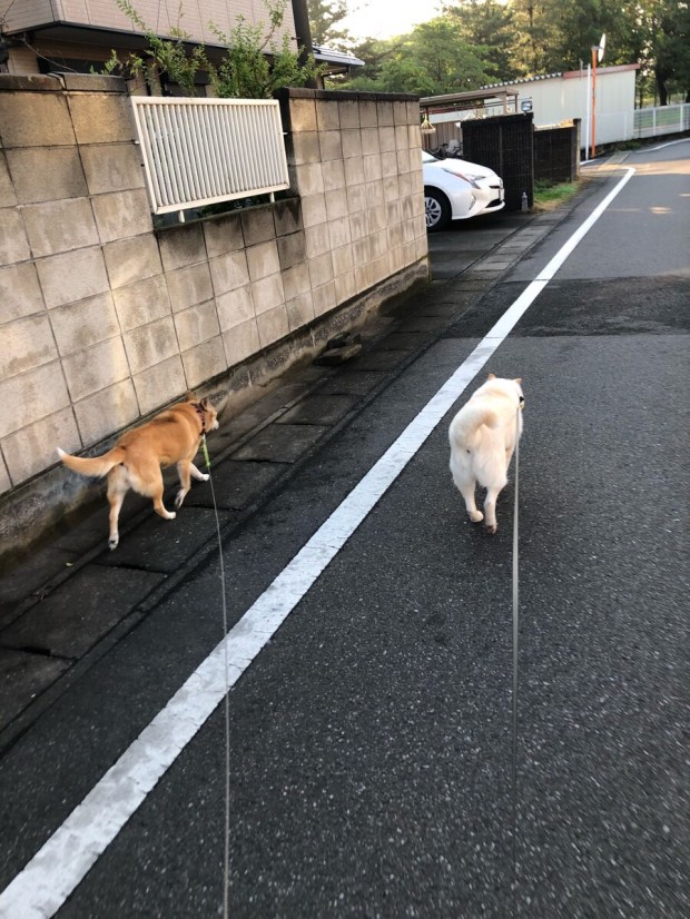 お二人さんは、時間関係なく 喜んで お散歩へ🎶しっかり道草喰いまして(≧∀≦)