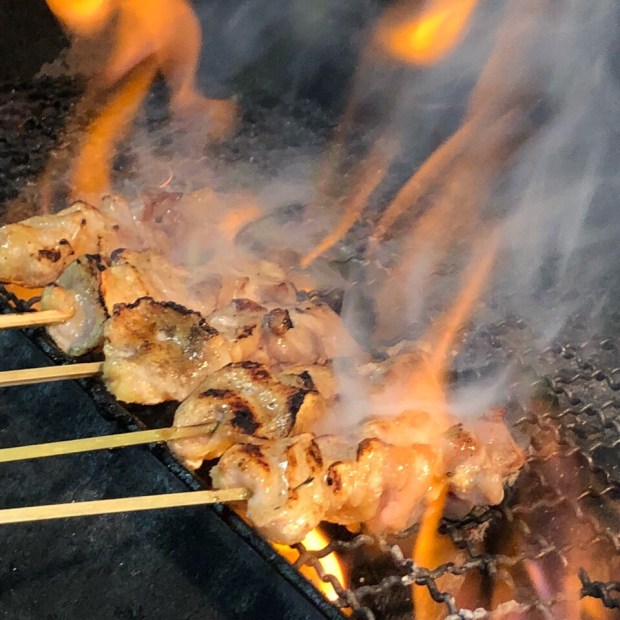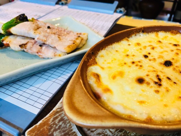 炭火焼きとりと裏ごしポテトのチーズ焼き。