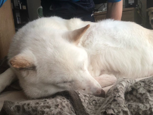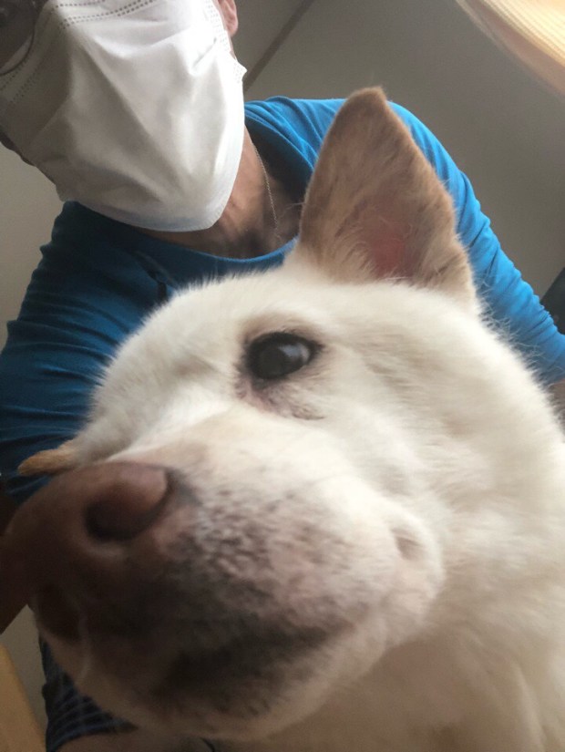 午後の散歩の為、帰宅しますと おじーワンは 気持ち良さそうに爆睡ぶっこいてまして(//∇//)