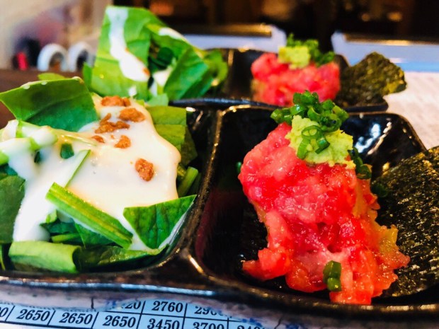 ほうれん草のシーザーサラダとタクトロの お通し。