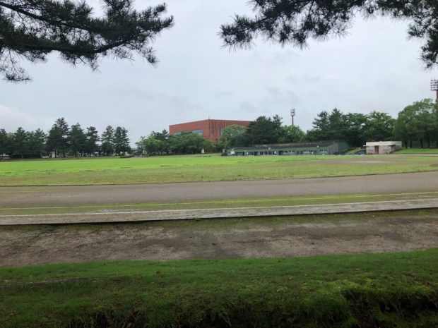 ウォーキングへ出ますと、弱〜く雨も降って来まして、強くなったら濡れちゃうなーな感じで、野球場の周りをグルグルするバージョンにε=ε=ε=ε=ε=┌(; ̄◇ ̄)┘