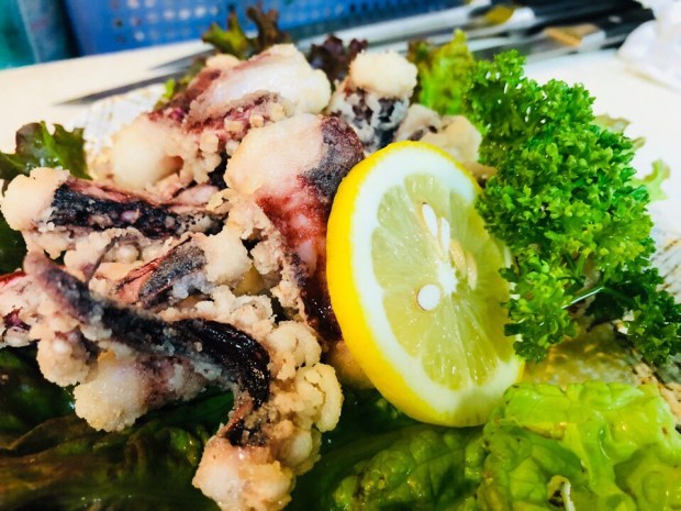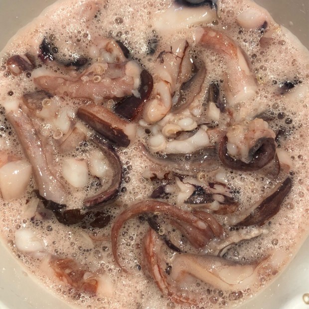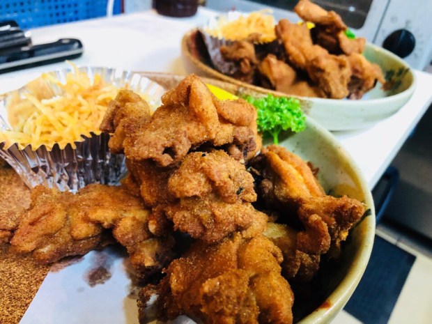 昼間仕込みました、イカゲソの唐揚げ。