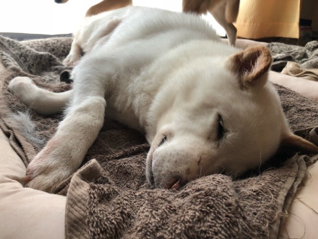 お家に戻りますと、エアコン部屋で おじーワンが爆睡中zzz…。