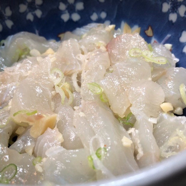 お通し用に、ヒラメの塩ユッケも完成❗️