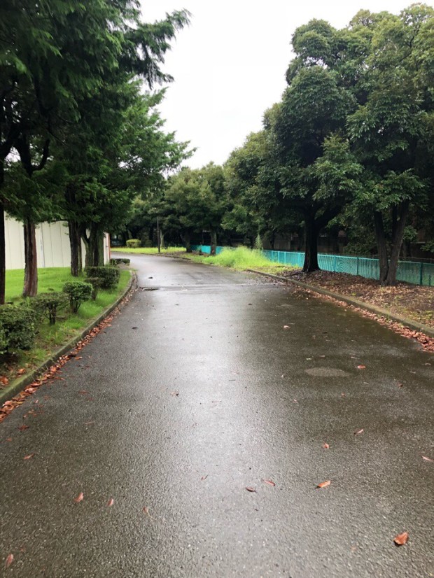 野球場周りを歩いてましたら、雨が落ちてきまして。。。